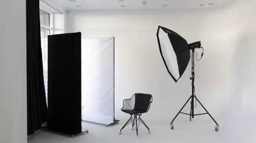 Просторный зал 80 м² с потолками 4 м, идеально подходит для персональных съемок и больших команд: коммерческие проекты, каталоги, лукбуки, модельные снепы и видеосъемки.