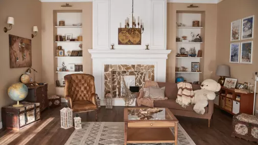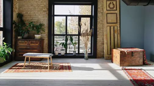 83 кв.м. Светлый интерьерный зал. Высота потолков — 4,5 м. Пол из керамогранита под натуральное дерево бежевого цвета раскладкой ёлочка. Большие окна. Коричневые шторы blackout. Восточная сторона, прямые солнечные лучи с рассвета и до 12:30, далее...