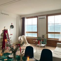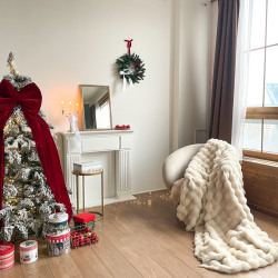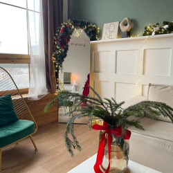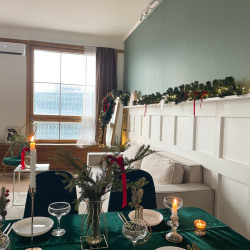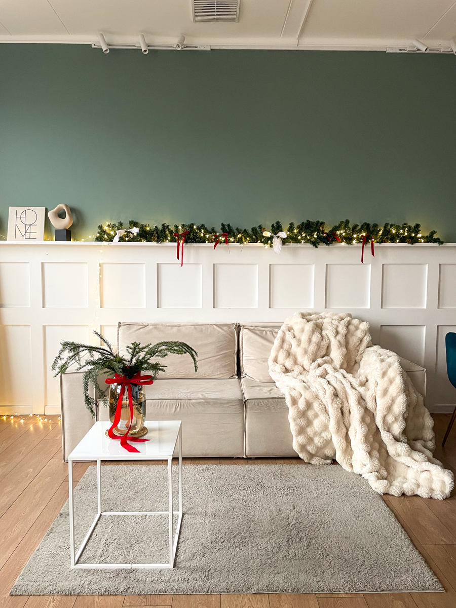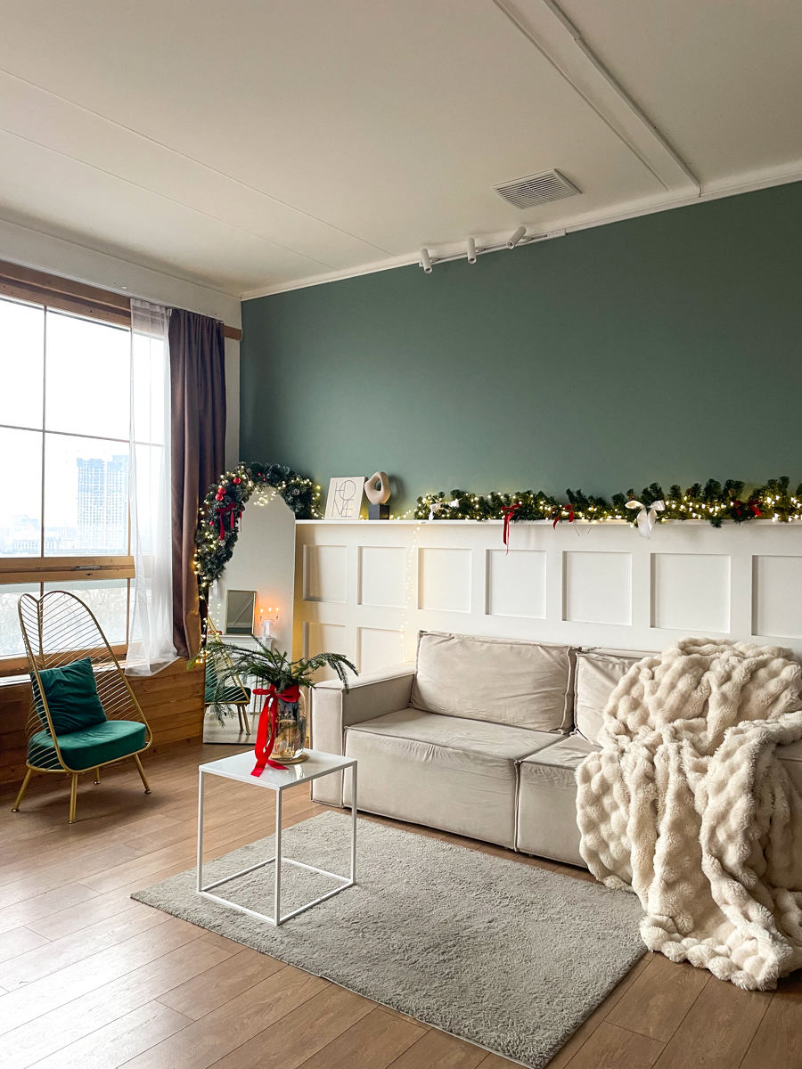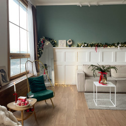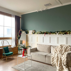 Елочная гирлянда на стене ( над диваном) не убирается.