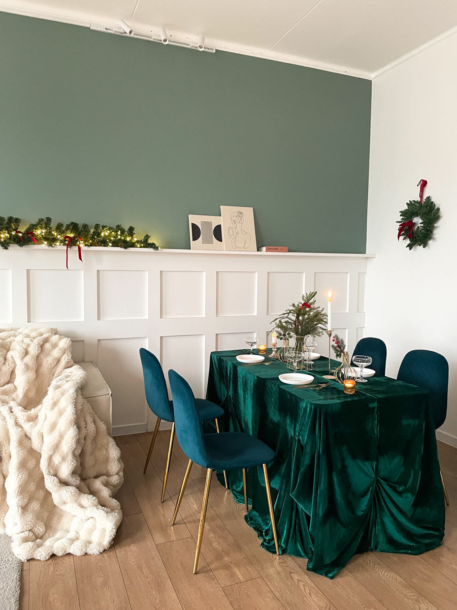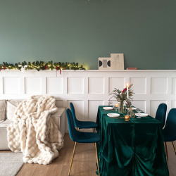 В зале мягкое кресло, диван-кушетка, бархатные ткани в молочного и изумрудном цвете. Панорамное окно, много дневного света.