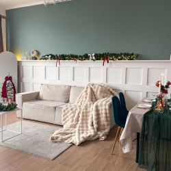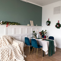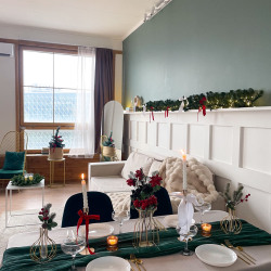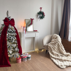 В зале Cozy новогодний декор!) Заснеженная елка с розовыми украшениями и подарками! На стенках заснеженные венки с розовыми бантиками!Новогодний декор можно двигать, важно к концу брони , вернуть все на места)Больше фото: https://photozall.ru/cozy...