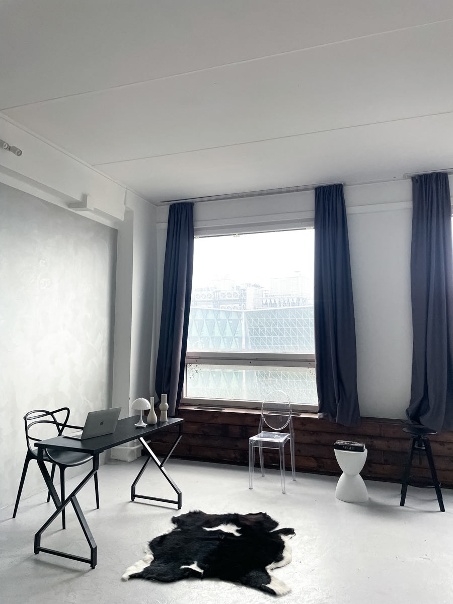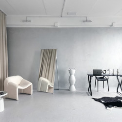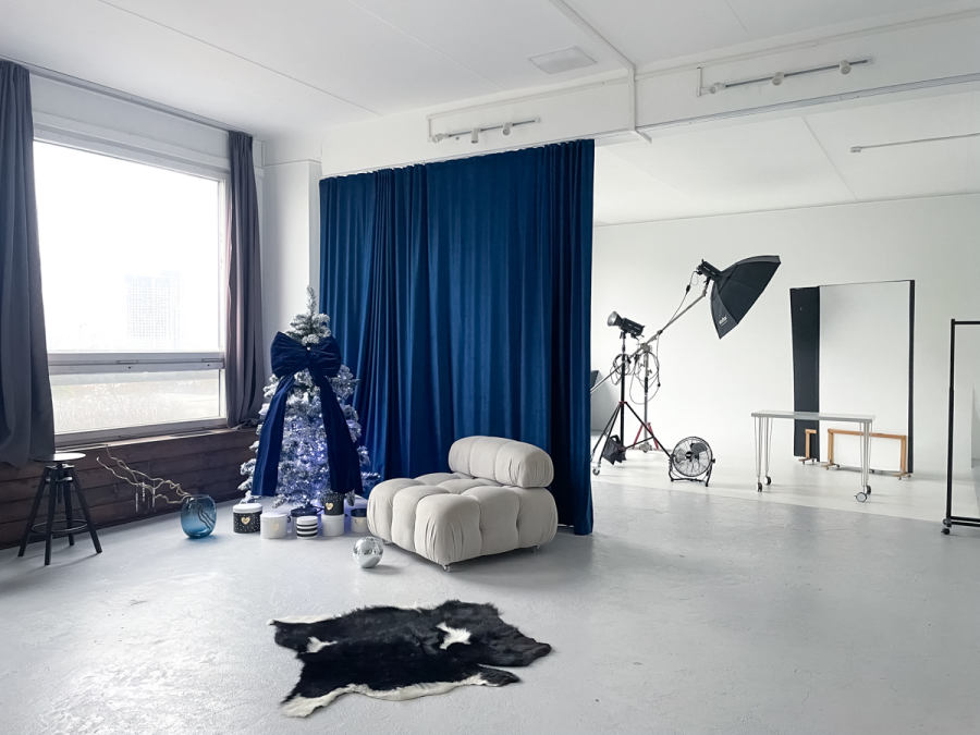 Зал SEREBRO локация для коммерческих и рекламных съемок, индивидуальных фотосессий и записи видео.Импульсный свет Godox, циклорама, панорамные окна, интерьерная зона с мебелью.