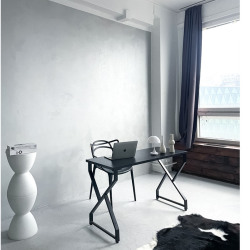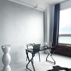 -стены с декоративной штукатуркой в серых тонах, пол-
