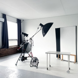 -белая циклорама 4х4, ростовые отражатели, гибкое зеркало, зеркальный