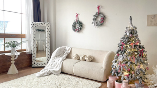 Розовая елочка, белоснежная скатерть с драпировкой, живые елочные веточки и множество милого декора в новогодней тематике уже в зале Cozy ) Забронировать: https://www.photozall.ru/cozy...