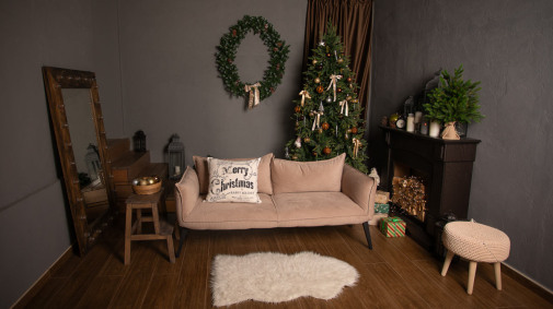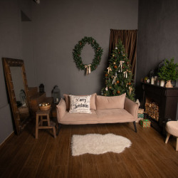 Новогодний декор! Небольшая уютная фoтостудия с серыми фактурными стенами, диваном и камином. У нас вы можете в уютной и комфортной обстановке пофотографироваться на фонах с импульсным или постоянным светом. Всегда доступен белый фон для портpeтов, пpедмeтнoй cъeмки для маpкетплeйсов (вaйлдбеppиз, oзoн и т.п.). Есть также коричневый и черный фон. Фоны при раскатке до пола бесплатно! (Если нужно раскатать по полу чистый фон, цена 500 рублей за метр).