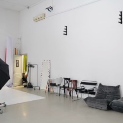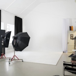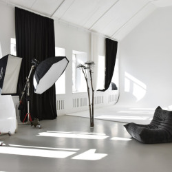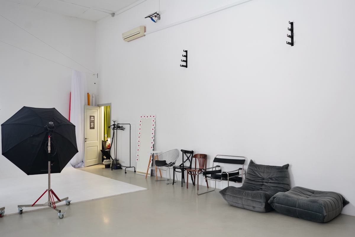 Белый зал с различными зонами для съёмок