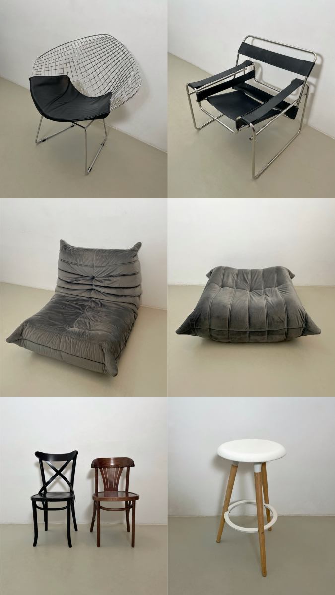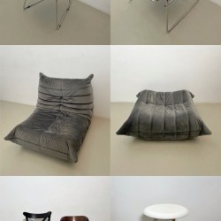 Серое кресло и серый пуф
