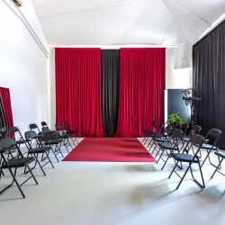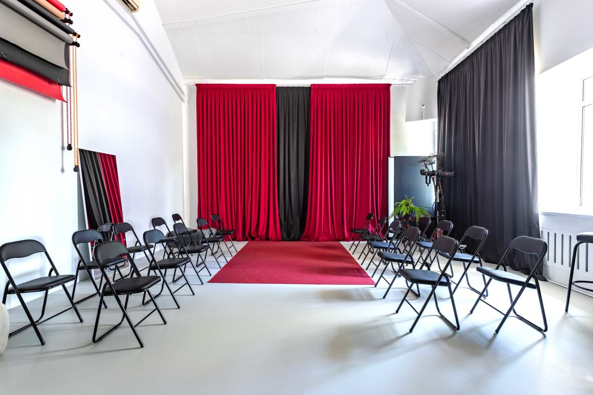 Зона с красной бархатной шторой