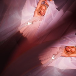 Зона с белой струящейся тюлью над циклорамой