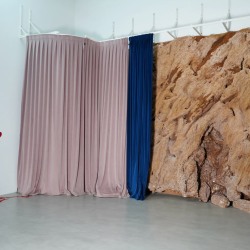 Зона с синей бархатной шторой