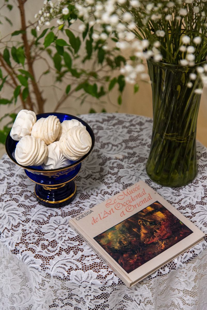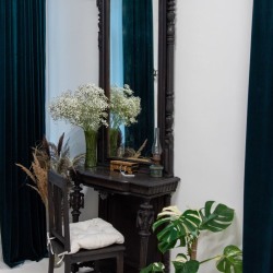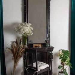 Старинное зеркало 19 века — главный акцент пространства, придающий ему исторический шарм и глубину.