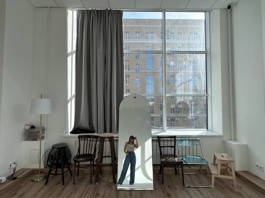 Простор, воздух и настоящая кухня — всё, что нужно для живых кадров и атмосферных мероприятий.. Белые стены, фактурные поверхности и уютная зона в стиле городской квартиры делают интерьер универсальным. Здесь органично смотрятся и портреты, и рекламные ролики, и подкасты, и даже девичники с днями рождениями и мастер-классами.
