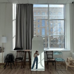 Всегда белая циклорама станет чистым холстом для ваших задумок и коммерческих съемок. Преимущество нашего зала: белый потолок 5 м, фактурная мягкая стена, большое зеркало в полный рост, различные стулья и стационарные цветные фоны (использовать в раскатке до пола можно бесплатно). Редкий бонус — на выбор постоянный или имульсный свет, который входит в стоимость аренды.