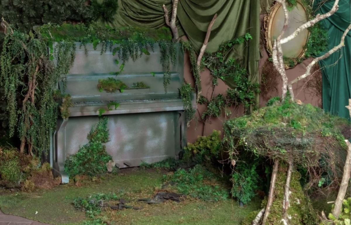 7. Лесная комната с зеркалом, мхом, заросшее пианино и кресла