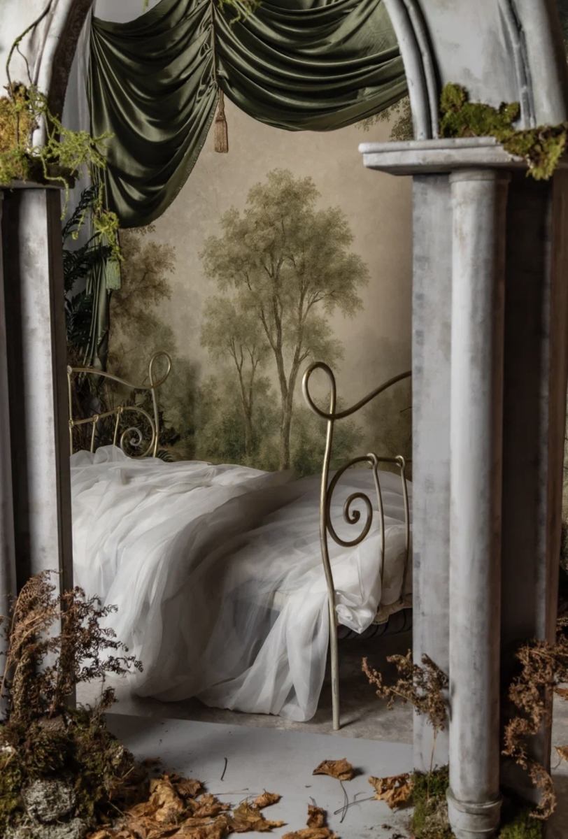 7. Лесная комната с зеркалом, мхом, заросшее пианино и кресла