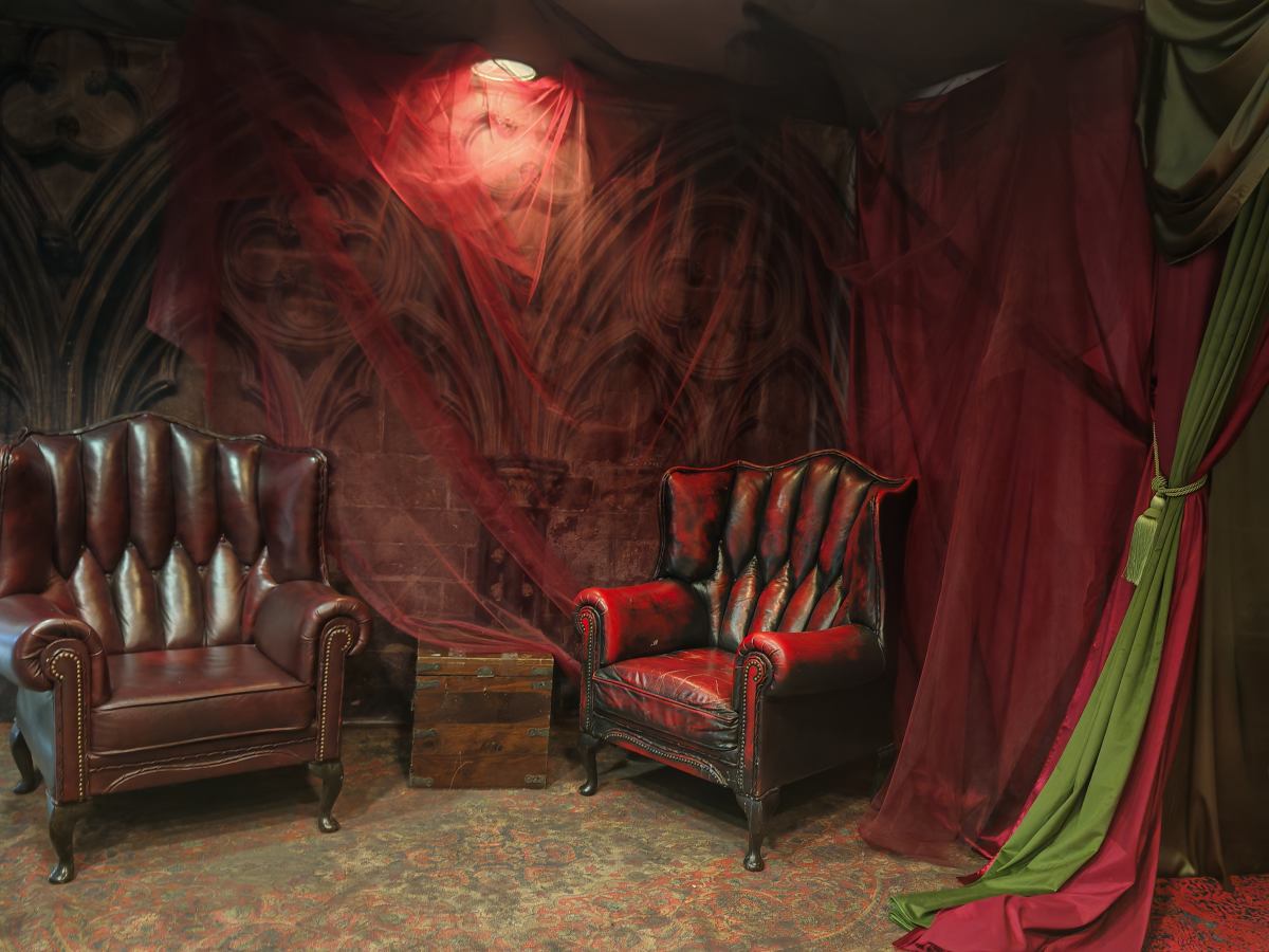 7. Лесная комната с зеркалом, мхом, заросшее пианино и кресла
