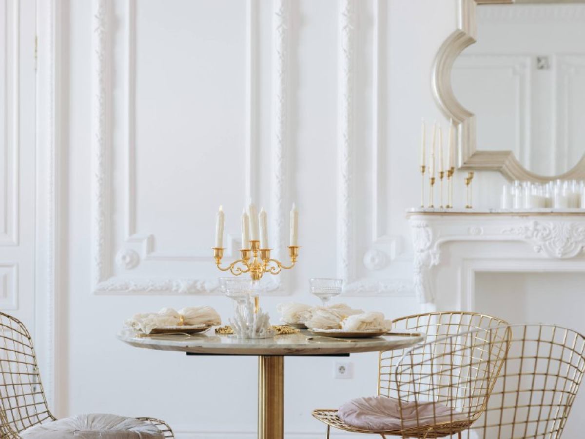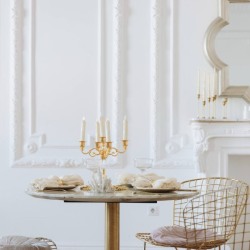 Интерьер: - большой светлый диван в французском стиле - кресло белое кожаное - кресло льняное - кресло розовое - круглый стол с мраморной столешницей и золотыми ножками - 3 стула с золотыми основаниями - пуф круглый под мрамор - столик кофейный эллипс - каминный портал со столешницей из натурального мрамора - зеркало в золоченой раме антиквариат 19 века (не снимается) - искусственная пальма 2м - стремянка из 2х ступеней