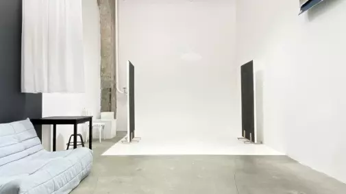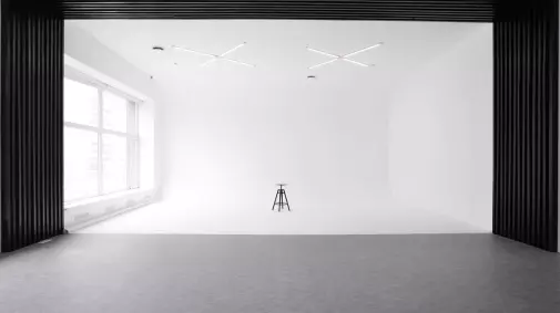 Зал площадью 45 кв.м с белой угловой циклорамой. Основная часть зала - 35 м (5.2 х 6.7) +11 кв.метров дополнительная часть, оборудованная собственным гримерным