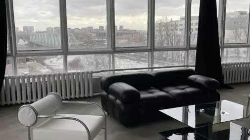 Полностью белый и светлый зал. Прекрасный вид, огромное 10 метровое окно во всю стену.