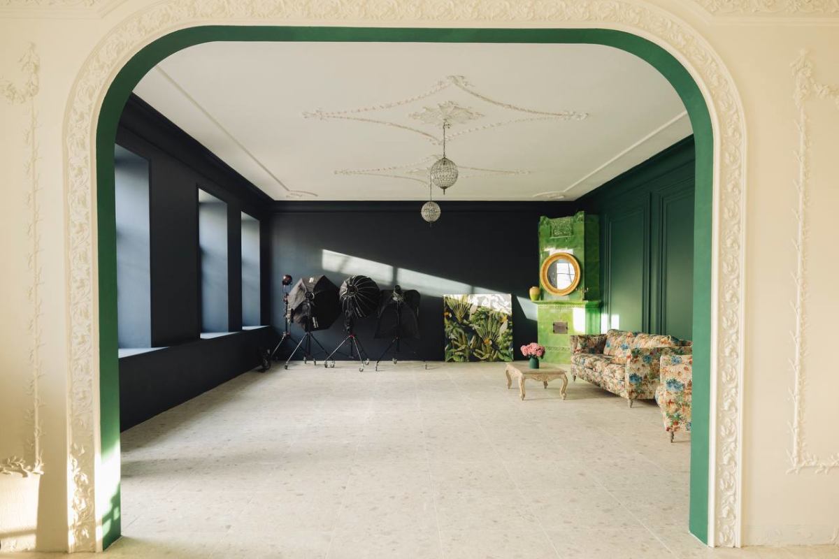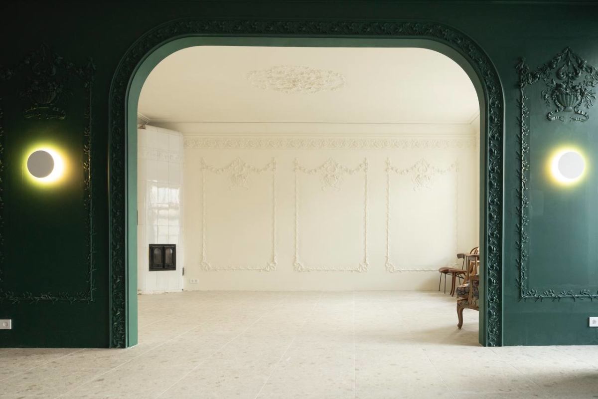 - 3 стены с лепниной: изумрудная, темно-синяя и бежевая