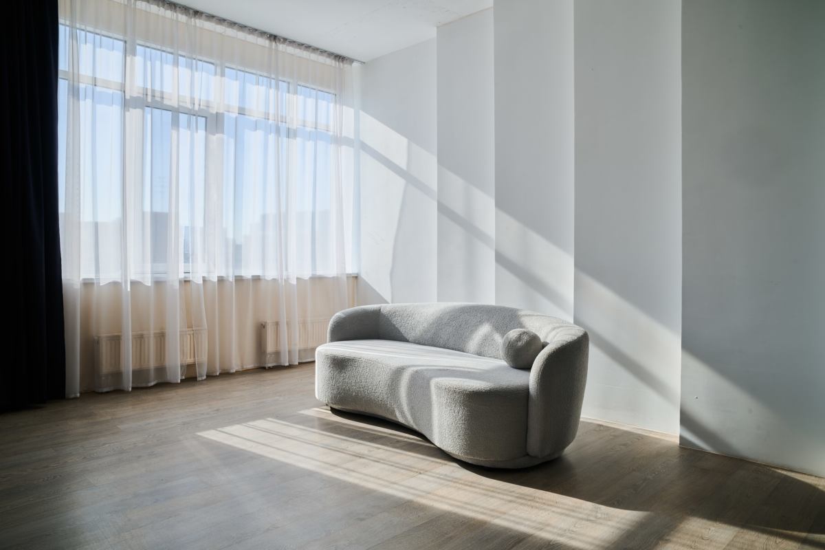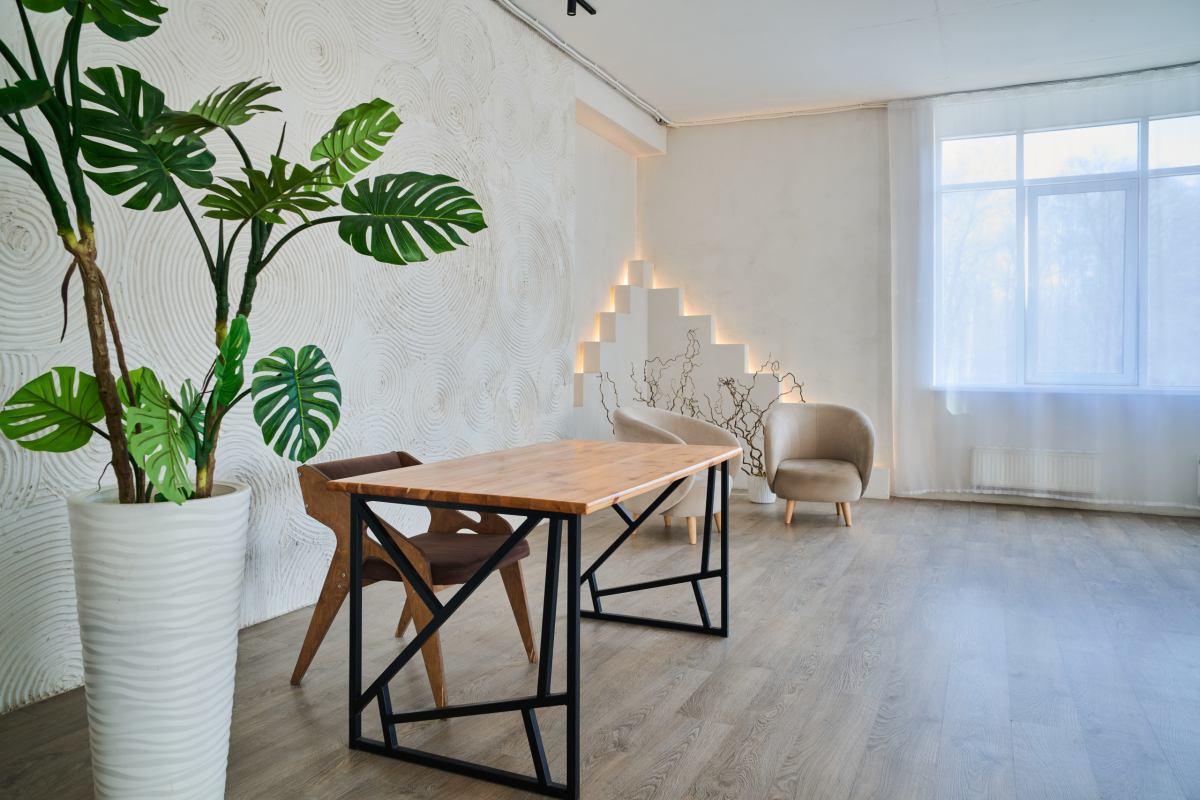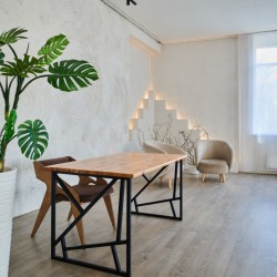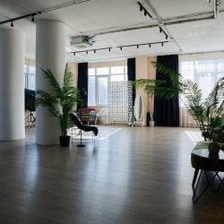 Стильный светлый зал в стиле лофт, разделенный тремя колоннами и окружен большими окнами с двух сторон, что дает много естественного света, прямые солнечные лучи в первой половине дня. Прекрасно подходит для больших фото/видеосъёмок, мероприятий, масстер-классов, для проведения стримов и записи роликов для блога.