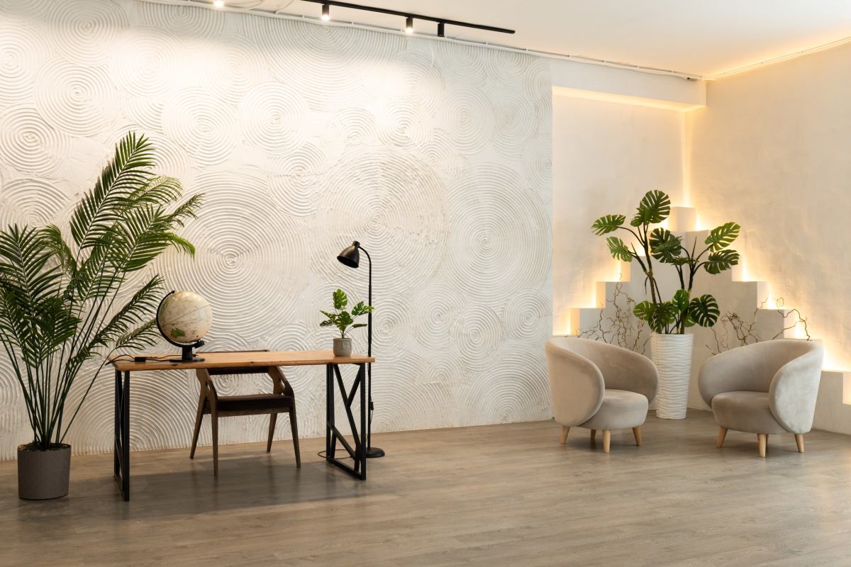 Стильный светлый зал в стиле лофт, разделенный тремя колоннами и окружен большими окнами с двух сторон, что дает много естественного света, прямые солнечные лучи в первой половине дня. Прекрасно подходит для больших фото/видеосъёмок, мероприятий,