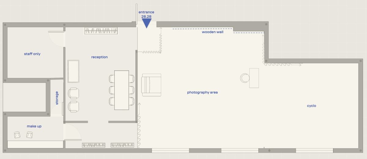 - прямую циклораму 4,5 на 5,5, высота 3,4 м,