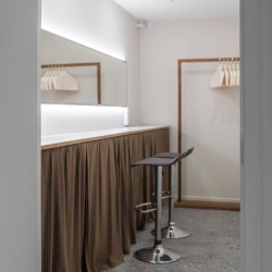 - стена с бежевым оттенком с системой подвесных фонов (наличие цветов уточняйте),