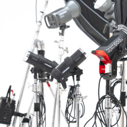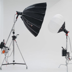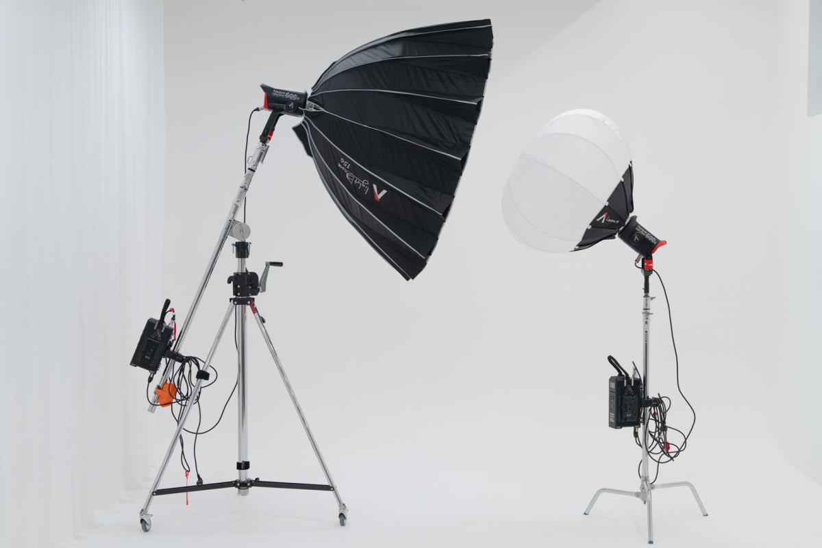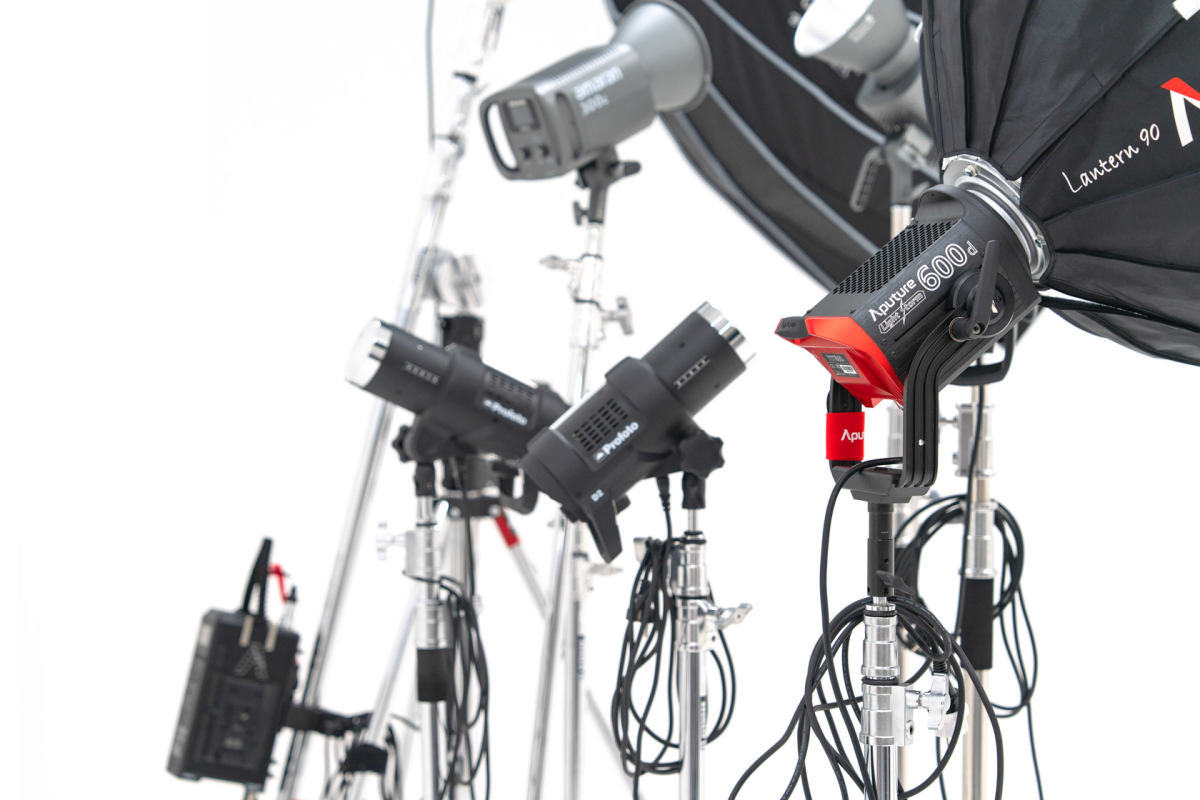 Зал укомплектован импульсными источниками Profoto D2 500 AirTTL 2 шт. и разными светоформирующими насадками.