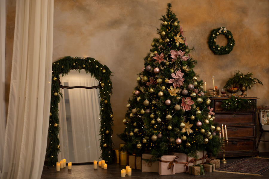 Элегантная фотозона идеально подходит для создания семейных портретов, романтических съемок и фотосессий, передающих атмосферу Рождества.