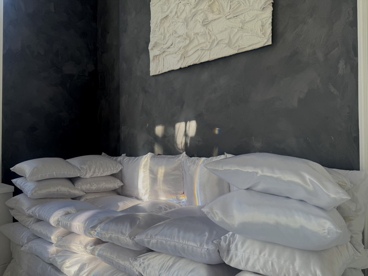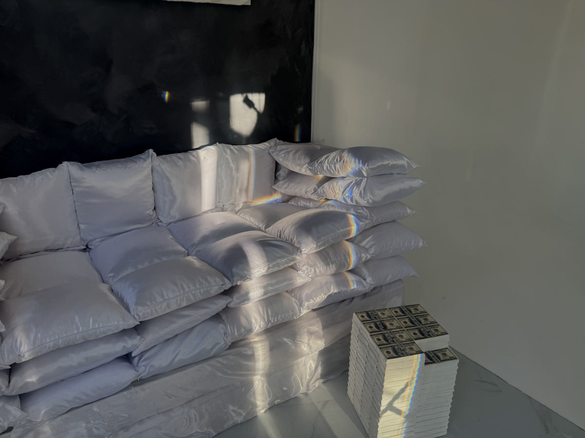 Надувные кресла, стол и стулья словно сотканы из воздуха и света. Они не загромождают кадр,...