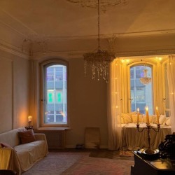 Наши залы (Малая и Большая комнаты) расположены в доходном доме Чубаковых, которых был построен в 1911 году. Именно в большой комнате с того времени сохранились в первозданном виде паркет и ажурная лепнина. Мы очень ими дорожим и счастливы, что у нас есть возможность показать эту красоту и вам.