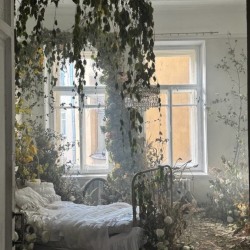 Когда лето сдает свои права начинается шахматная партия осени. В новом оформлении вас ждет садовая поляна с кроватью, объятая диким свисающим виноградом, зарощенная розами, сухостоем и гортензией