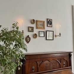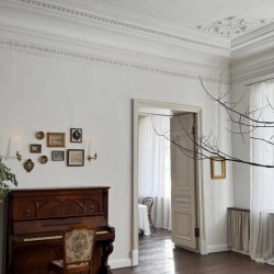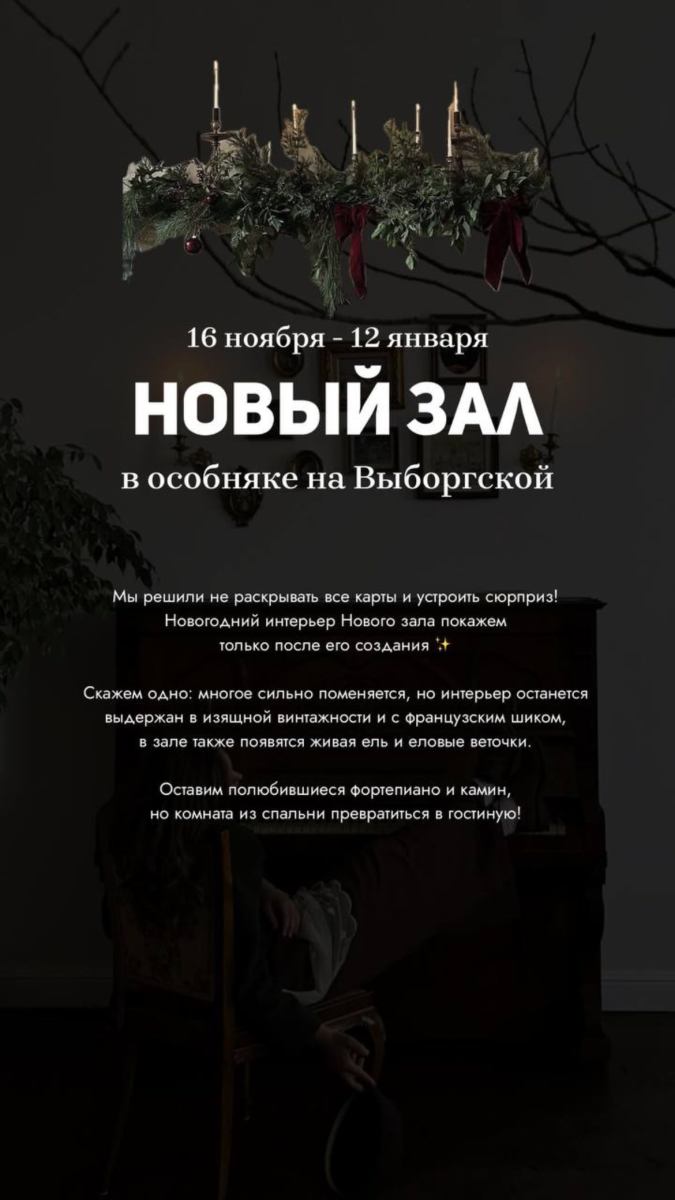 Элегантная кровать с балдахином, камин с ажурной гипсовой короной, антикварные шкаф и фортепиано с галереей фотокарточек над ним, диван и гобелен с французской вышивкой и другие детали, создающие уют и атмосферу. В честь открытия сделали для вас сюрприз — осенний сет с аркой из живых растений. Он будет ждать вас до новогоднего сезона!