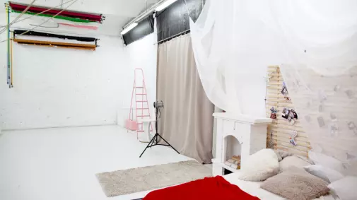 Студия идеально подходит для записи подкастов и информационных роликов, в стоимость аренды включено использование света и устройств для записи звука.