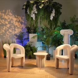 - Дизайнерский круглый стол на четверых человек (по запросу можем поставить стол на большее количество человек)