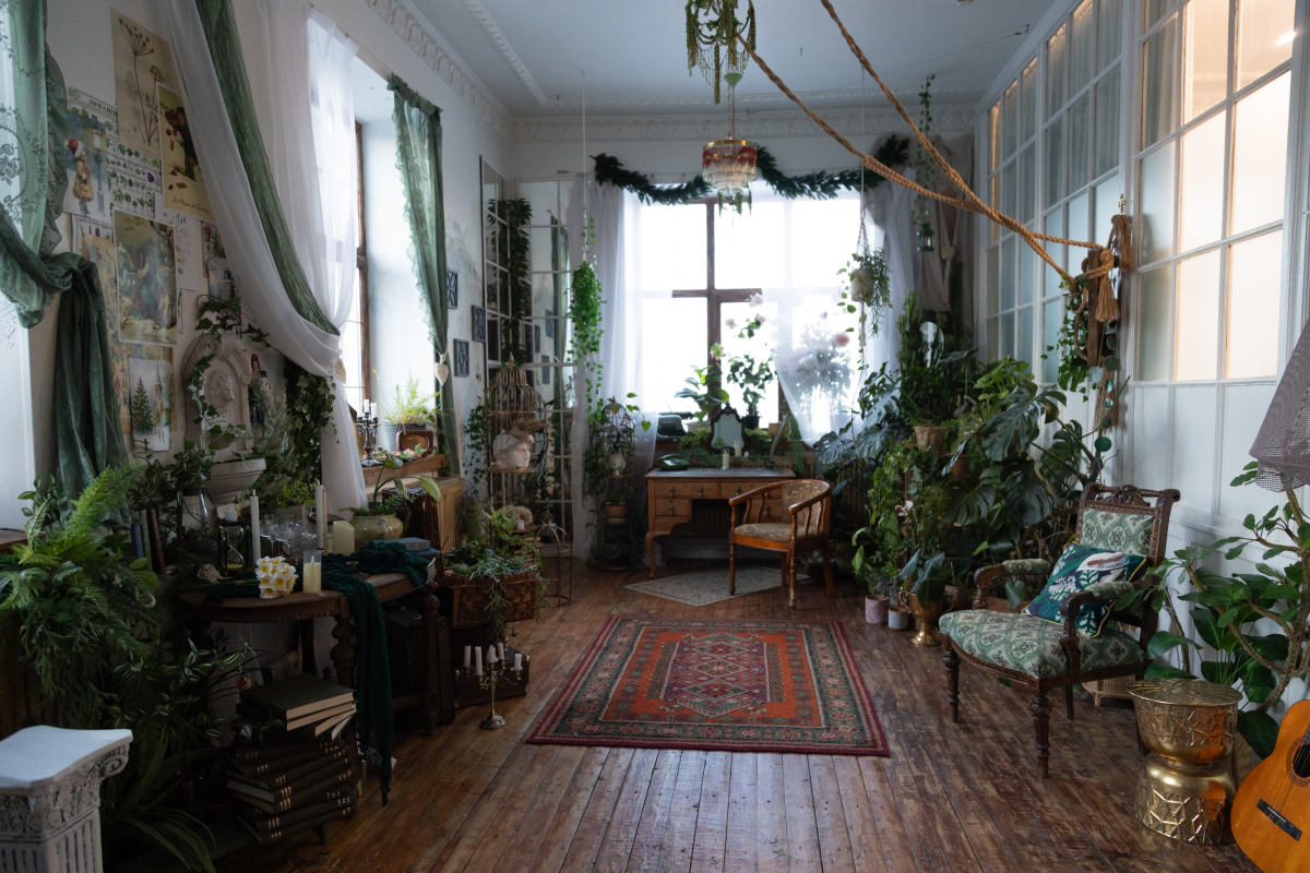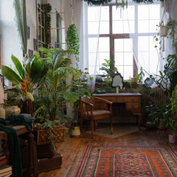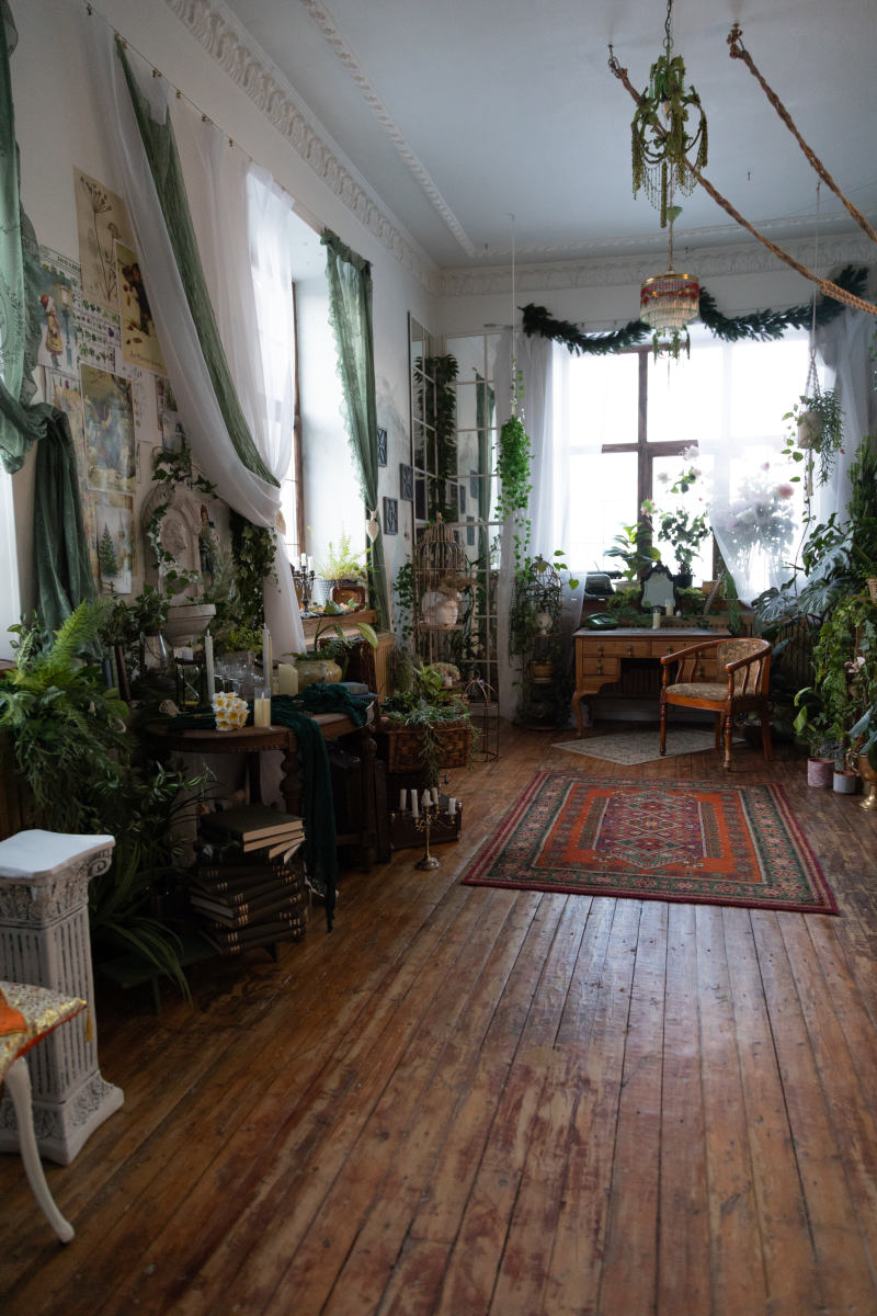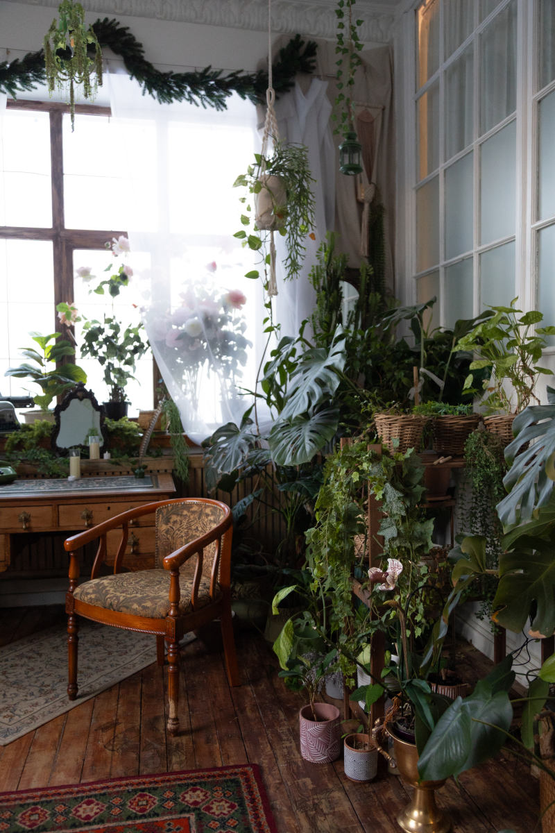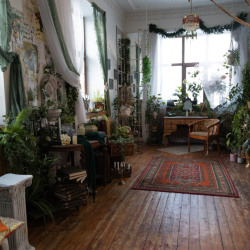 Винтажный зал похожий на галерею, с 4 окнами на солнечной стороне, наполненный живыми восхитительными цветами!