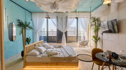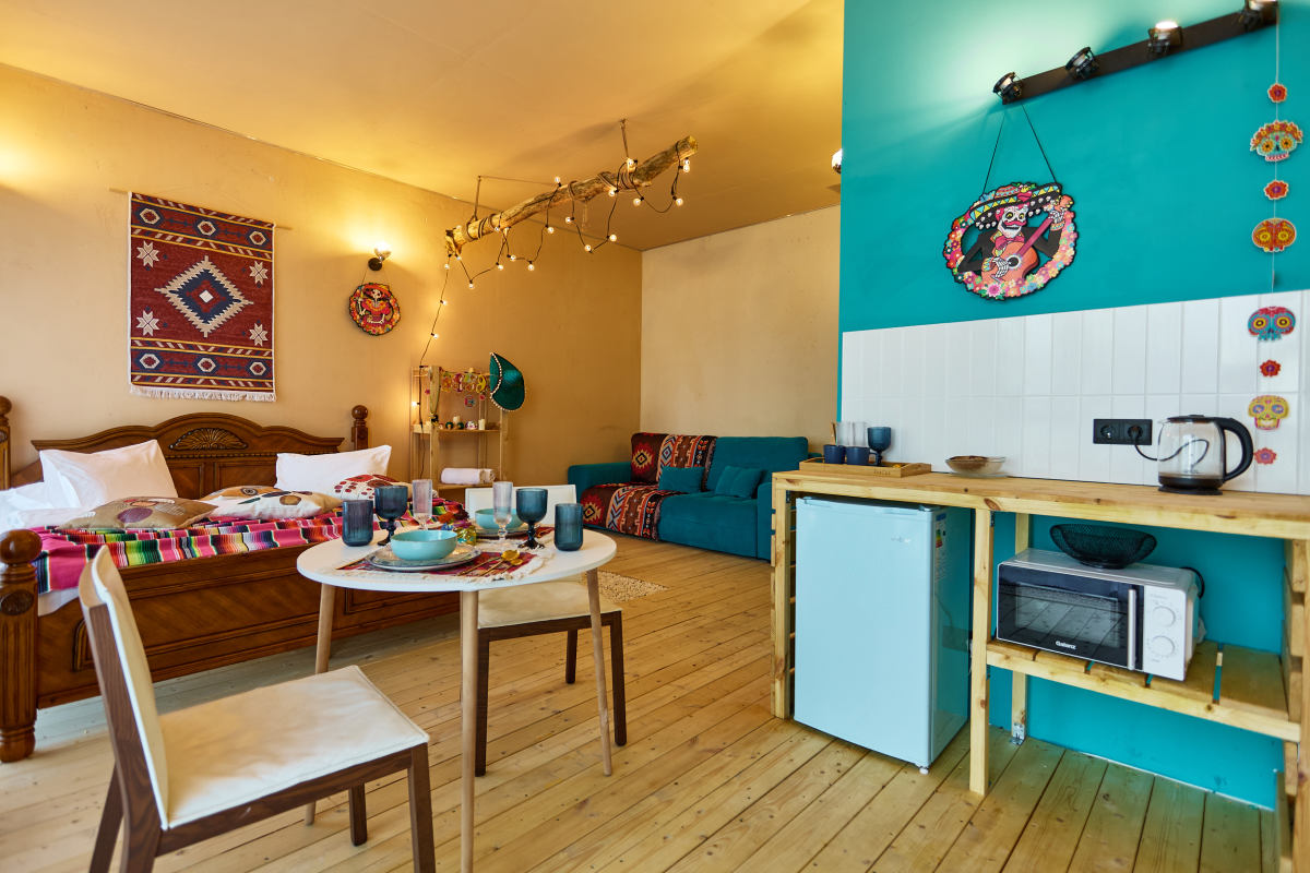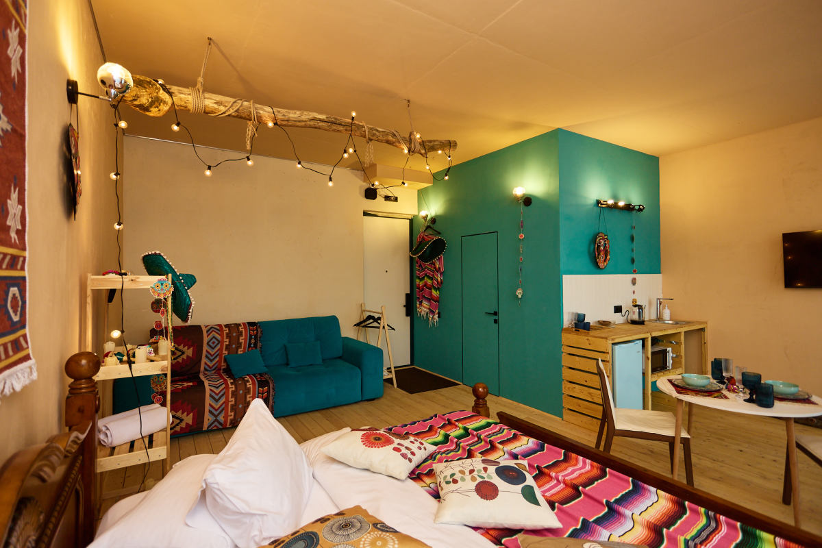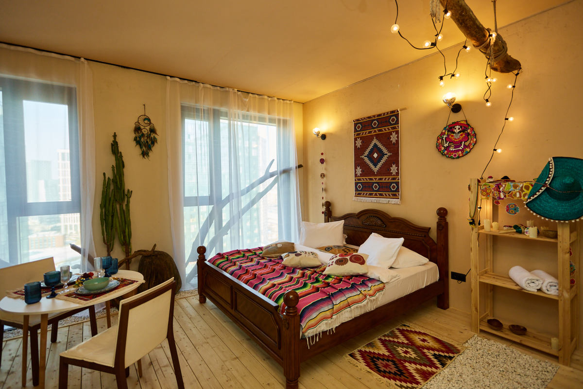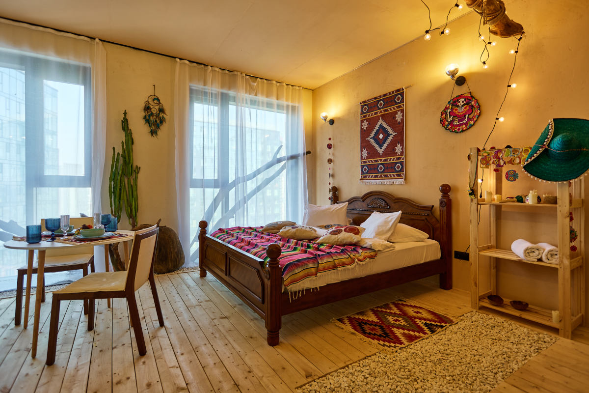 Студия «Мексика. Лос-Кабос» в ЖК Level Причальный: Яркая вечеринка, кактусы и вид на реку!