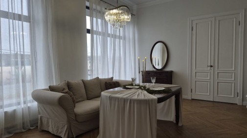 Зал с большой циклорамой 6,5 на 5 м, кресла, стулья. Два кна. Солнечная сторона. Находится в Сергиевом Посаде