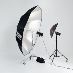 - Насадки: два стрипбокса (одинаковые 30*180), октабокс 150 (по умолчанию на приборе на журавле), софтбокс 60*90.