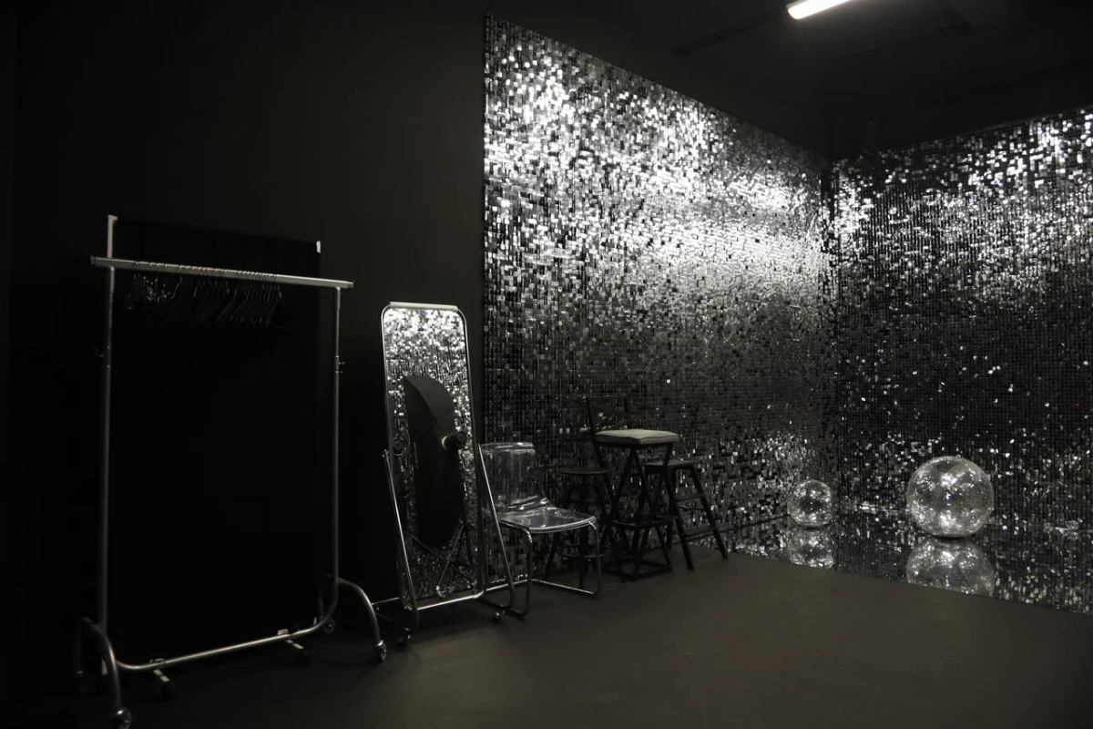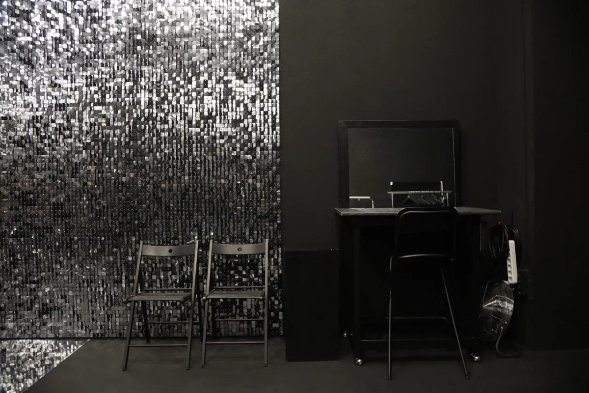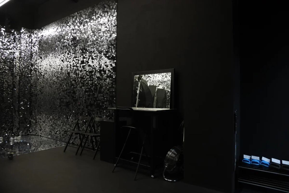 - Зал полностью выкрашен в чёрный цвет. На пол можно выкладывать зеркальный пластик (полистерол). По умолчанию два листа 1*2 метра в зале (бесплатно).
