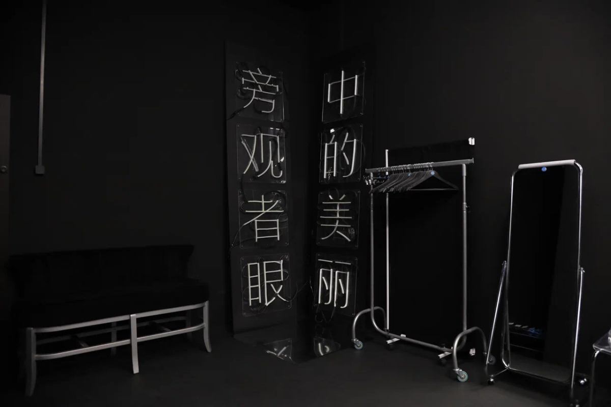 Зал выполнен в минималистичном стиле. Все стены и потолок выкрашены в чёрный цвет.