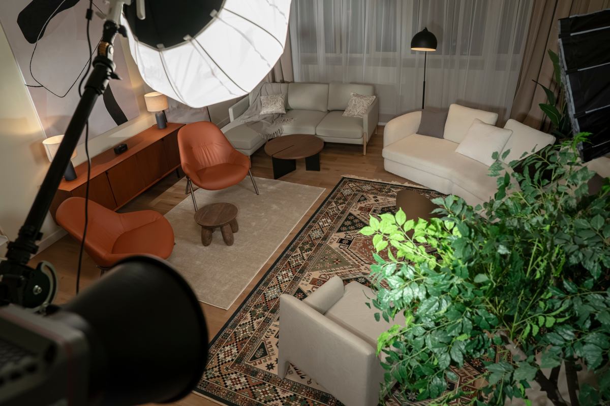 Универсальное пространство для самых разных задач. Подходит для домашних фотосессий, больших интервью и даже съёмок кино.