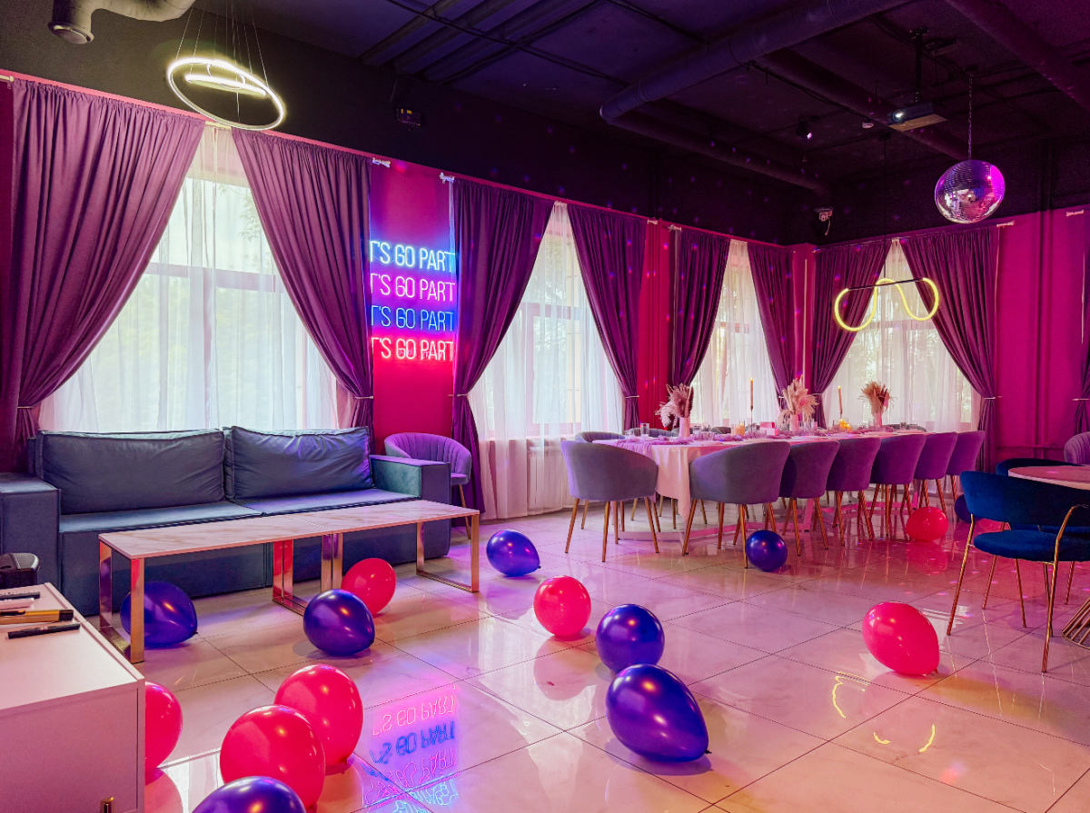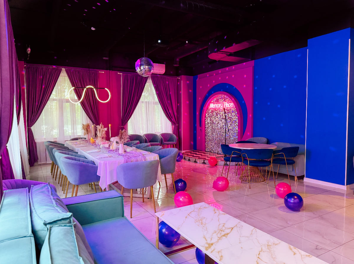 Зал «Memory» это пространство, где яркие оттенки и неоновые огни оживляют каждую деталь. В зале вас ждет эффектная сцена с пайетками, создающая атмосферу настоящего праздника. Идеально место для съемок в стиле вечеринки, концерта или любого события, которое требует ярких, энергичных и динамичных кадров.