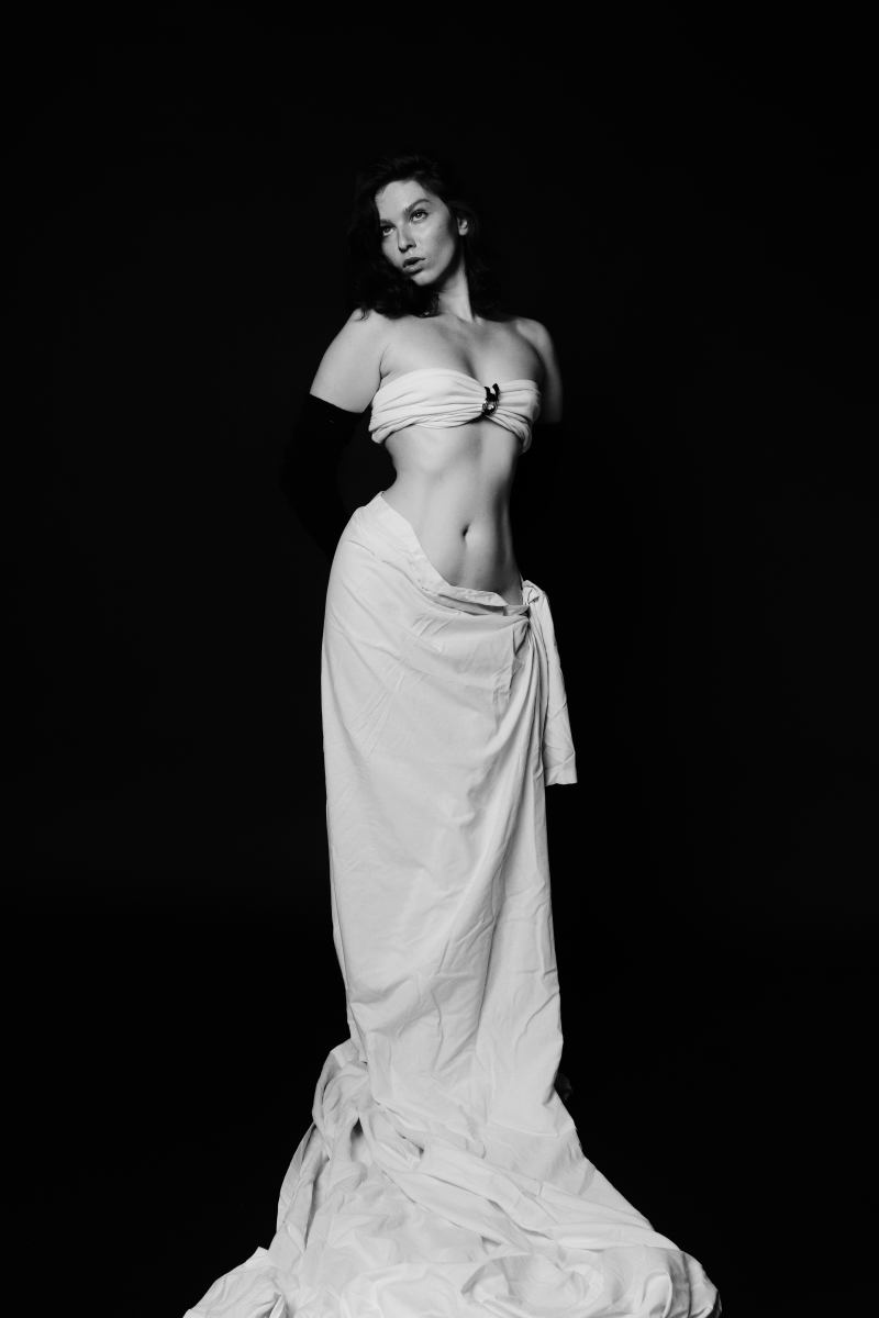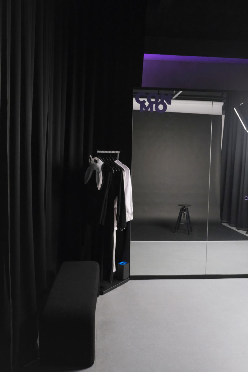 В студии на выбор белый или черный фон, установлен студийный свет, а за зеркалом настроен профессиональный фотоаппарат.