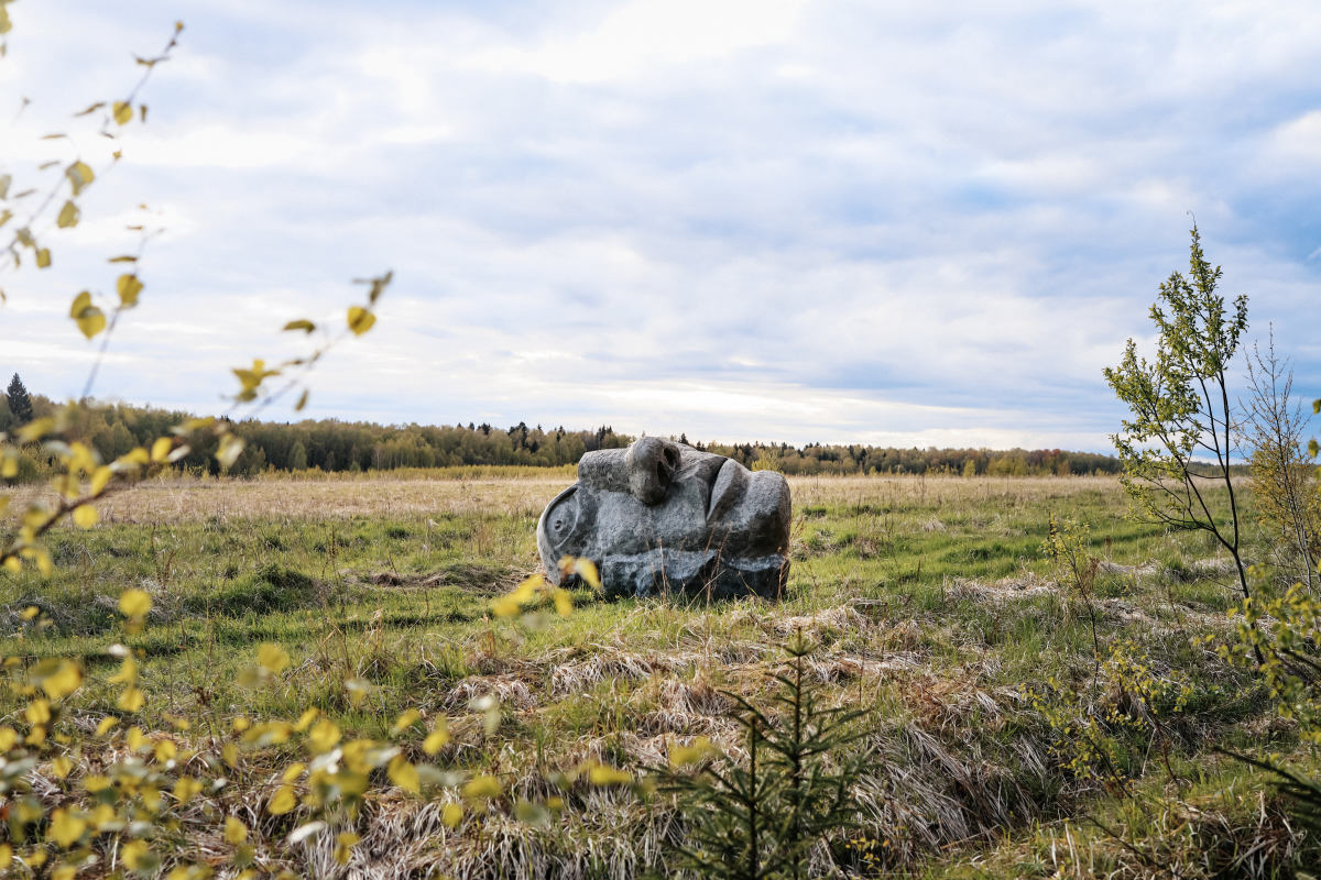 Уличная локация. Скульптура головы (безымянная) в лесу. Возможность залезать на неё