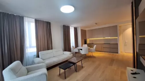 Просторная гостиная с балконом и отличным видом. Современная кухня, 2 санузла. Всё необходимое для комфортного проживания: мебель, техника, посуда.