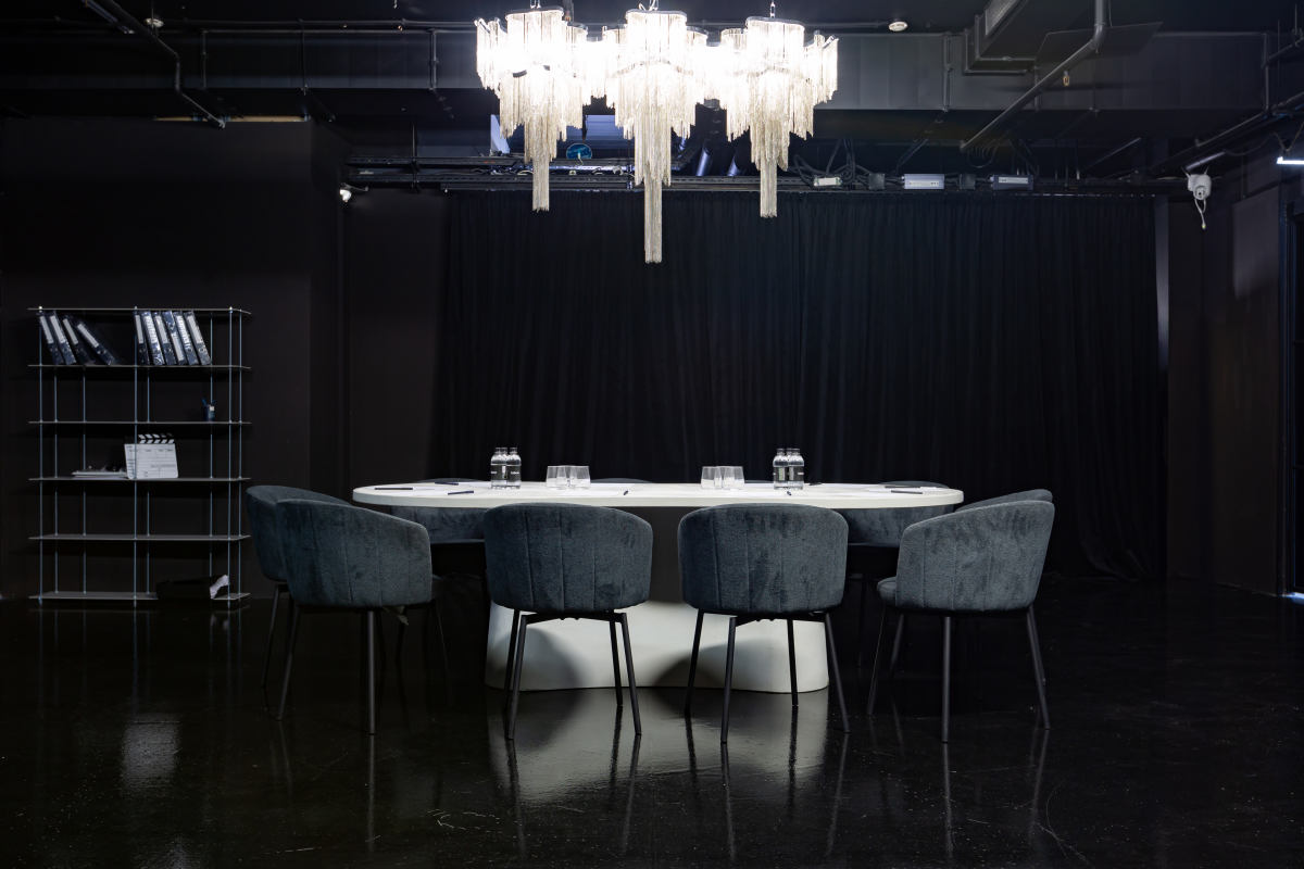 6. Стильный дизайнерский стол на 10 человек для ваших мероприятий и мастер классов с удобными мягкими креслами