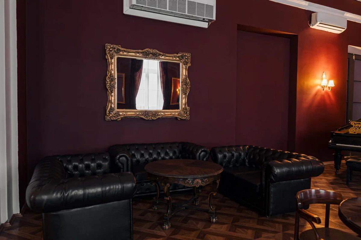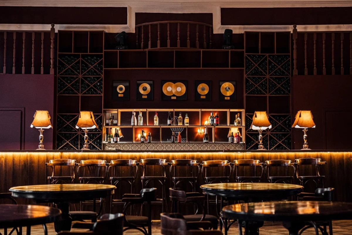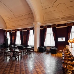 Большой и просторный зал, который оснащен современным световым и звуковым оборудованием. Широкая сцена, удобная кожаная мебель, старинный рояль и бар создадут незабываемые впечатления от любого мероприятия.